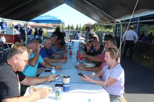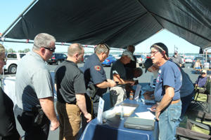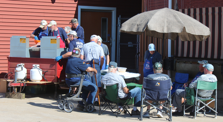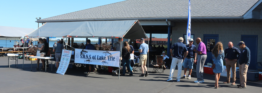 The SONS of Lake Erie held its 43rd annual Public Appreciation Fish Fry on September 3rd at the Bayharbor East Marina. There were 157 guests that were served a delicious walleye lunch. The fish fry was a great success thanks to the hard work of 25 volunteers who cleaned and prepared over 110 lbs of walleye filets, covered tables, put up three tents, manned the food line, mixed batter, manned the fish fryers, emptied the trash and cleaned up. We would especially like to mention SONS director Chuck Miller aka / Fry Daddy and his Frying Crew, who worked in the hot sun operating our two fryers, then waiting around for hours. while the cooking oil to cool and transport the fry equipment when it was all over. Our guest register team signed up 97 new SONS members and we sold many Fin & Fur Raffle tickets as well as SONS merchandise. The guests at the fish fry included members of various agencies, businesses, governmental entities and individuals that have interacted and provided services to us throughout the year. The event has become our way for the community to get to know who we are and what we do. Finally we would like to thank all those anglers who donated their fish to us and thank you to Mr. Tim Schmidt, Manager of the Bayharbor Marinas for letting us use this fine facility.